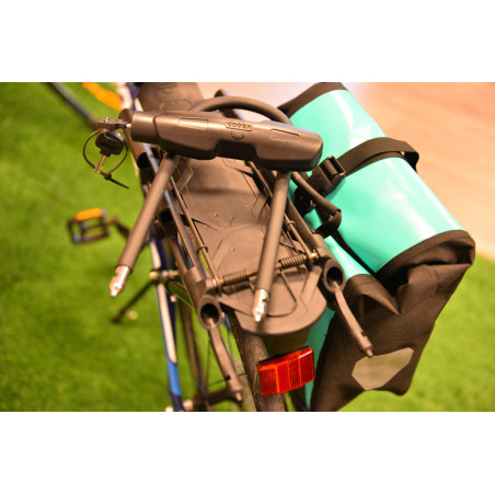 Il s’adapte parfaitement à notre porte-bagages Codex-U qui vous permet d’emporter votre cadenas caché avec vous lors des visites de la ville et vous évite de voler vos sacoches sur les routes de montagne.